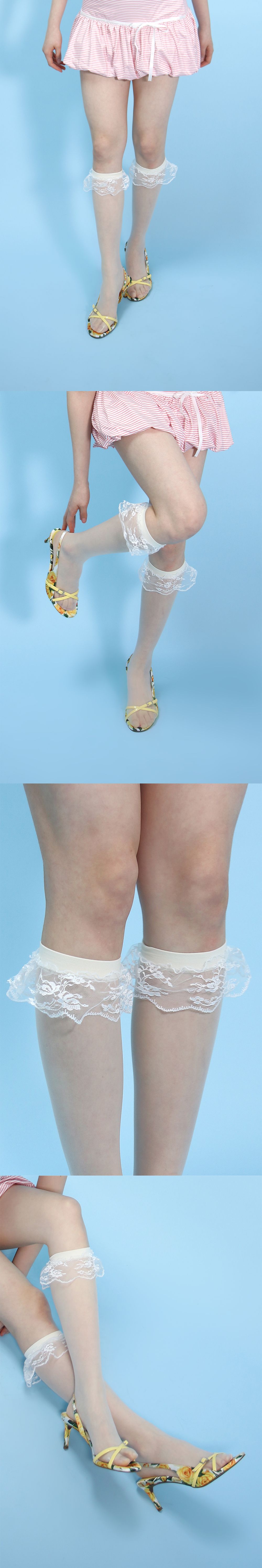 프릴 레이스 하프 스타킹 (아이보리)