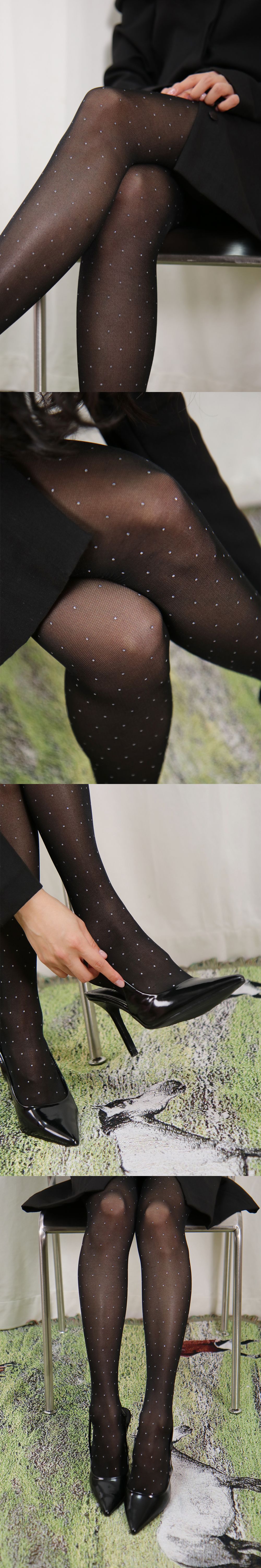 다이아몬드 도트 메쉬 스타킹 (블랙)