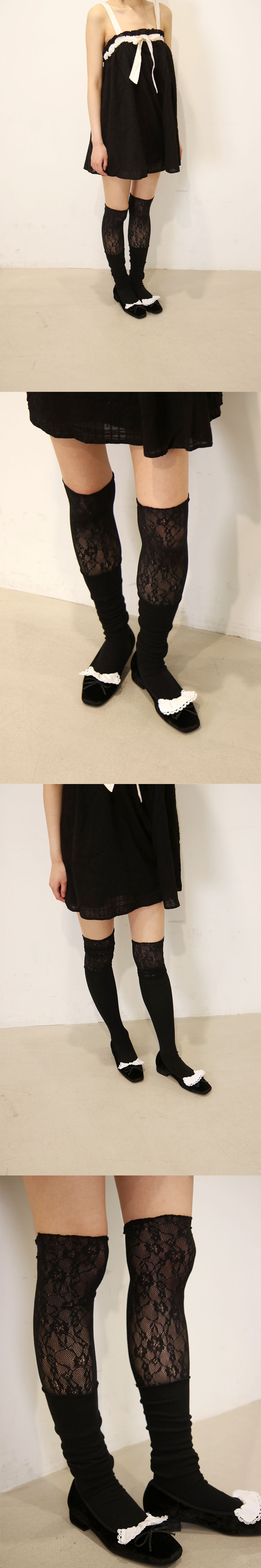 플로럴 레이스 오버 니삭스 (블랙)