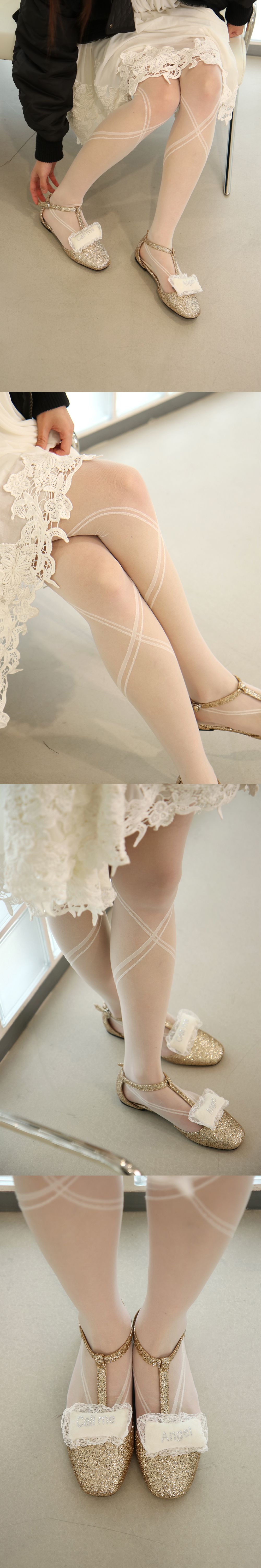 더블 라인 스타킹 (아이보리)